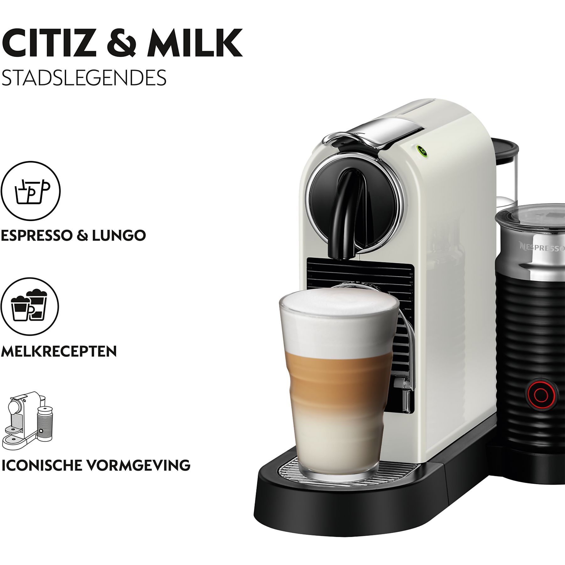 Ontdek de perfecte combinatie van design en functionaliteit met de DeLonghi CitiZ&Milk M195 koffieapparaat in witte uitvoering. Deze machine biedt dankzij het innovatieve Nespresso-systeem en het gebruiksvriendelijke ontwerp de ultieme koffie-ervaring. Met zijn compacte formaat en minimalistische ontwerp past hij discreet in elke moderne keuken. Deze model is voorzien van de Aeroccino melkopschuimer om binnen en handomdraai heerlijke en romige cappuccino te bereiden.