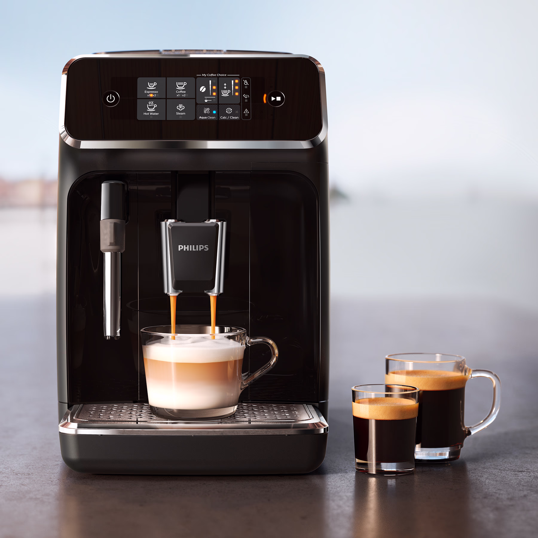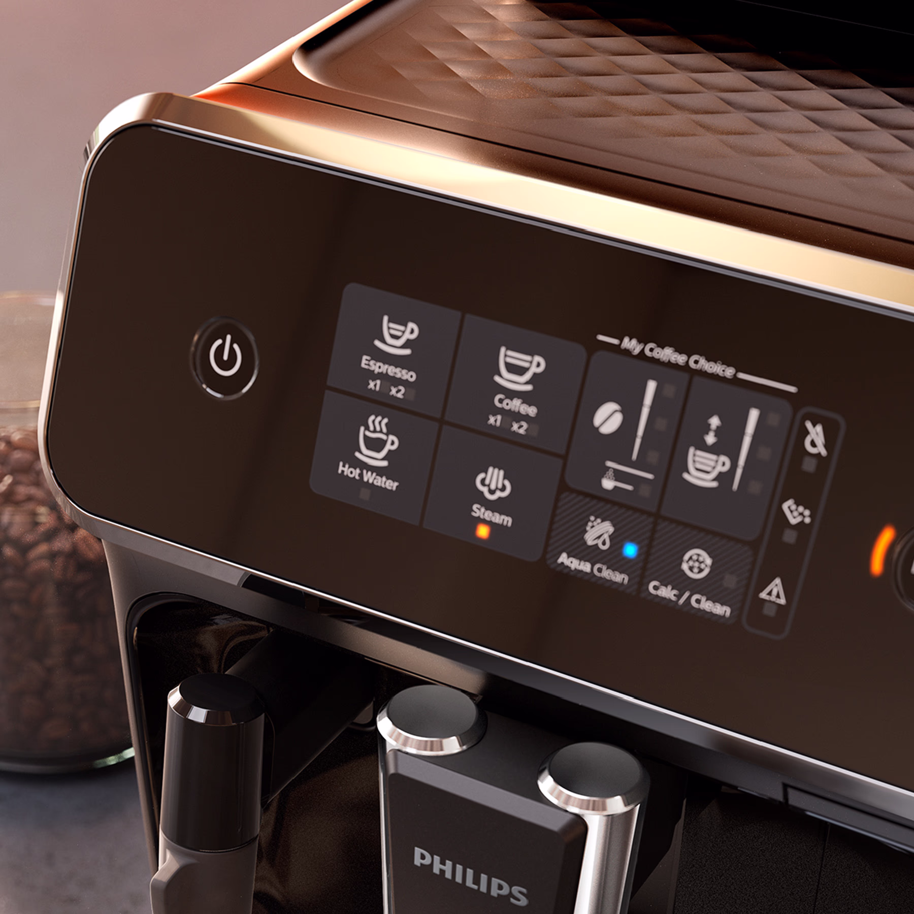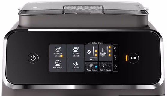 Dankzij het intuitieve touchscreen-bedieningspaneel met duidelijke pictogrammen kies je snel en eenvoudig jouw favoriete koffiedrank — van espresso tot zwarte koffie — met één druk op de knop.